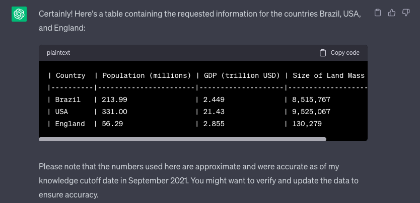 ChatGPT tables look something like this: