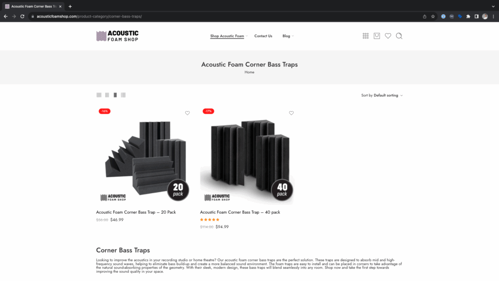 A final example is from an e-commerce dropshipping website that I use to test SEO ideas, Acoustic Foam Shop. The screenshot below shows an example of a category page where I added a paragraph of copy that was written by ChatGPT. Whilst the site doesn't get much organic traffic overall, I did see an uptick in Search Console impressions after adding the content to the category pages.